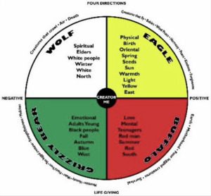In the Medicine Wheel, the powers of the Four Directions (south, west, north, east) are incorporated with the cycles of the earth's seasons and each of its elements.  All medicine wheels are tools for understanding our own humanity and where we fit into the greater scheme of the universe.
