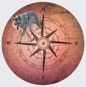Coyote, being the “trickster” archetype, disrupts the courses of habit and upsets expectations, reveals the shadows, and illuminates ideas through observation and questioning. When one is ready for change, they begin the Dance of the Coyote and become aware of their own complexes and limiting patterns by creating a bridge of perception from each of the directions. Once the changes have been made, they move on to the Walk of the Wolf.