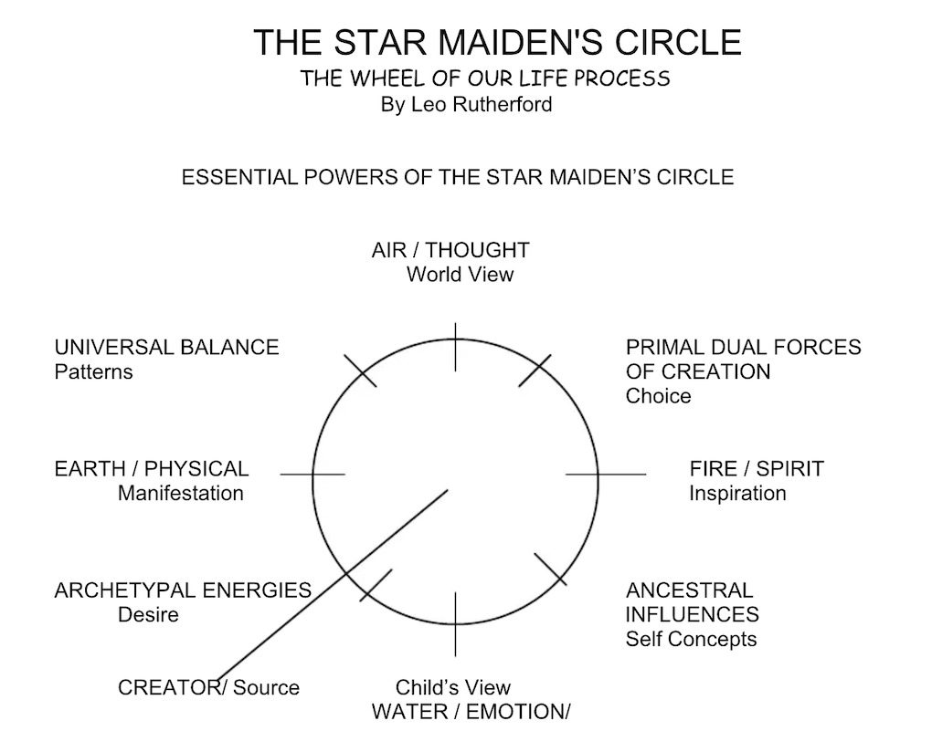 “As we heal and balance the dark mirrors by opening the symbols and shift all of our mythologies, symbols, daydreams, rules and laws, philosophies, designs of energy, fantasies and concepts of self into the light mirror, then we move from being at the effect and stuck in the Shideh (lower self) to coming into the full power of our Hokkshideh (higher self). Thus, in many ways, the Star Maiden’s Circle is a bridge to the Higher Self.”